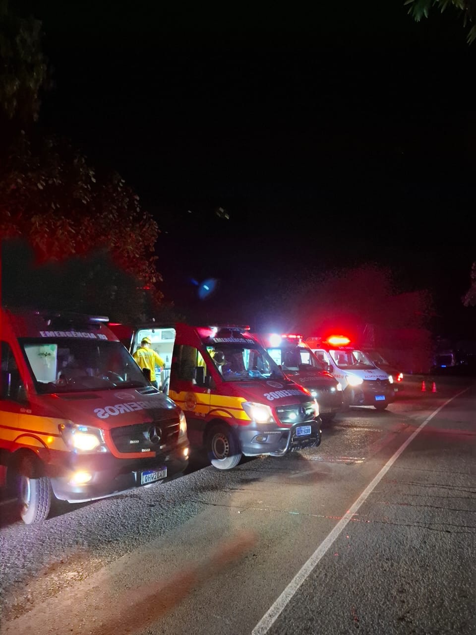 Ao todo, participaram da operação 14 bombeiros militares, sete bombeiros comunitários e sete profissionais do SAMU. As equipes atuaram no resgate das vítimas, na estabilização da cena e na garantia da segurança no local para o trabalho das forças de segurança e perícia.