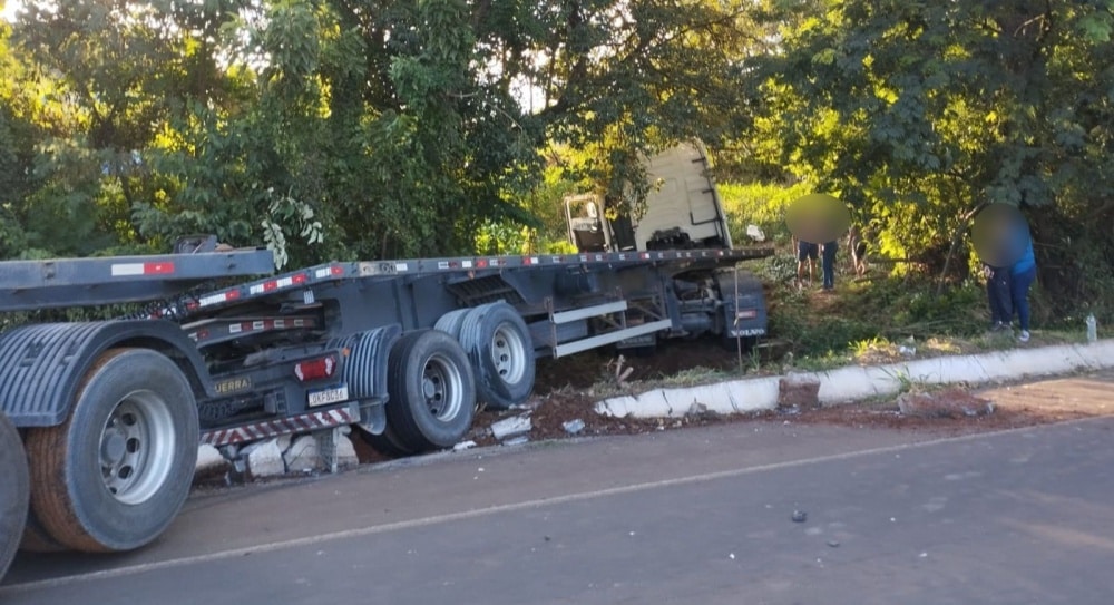 Após o forte impacto da colisão que resultou na saída de pista da carreta, uma mulher de idade não revelada, a qual, caminhava na margem da BR-282 no momento do acidente foi atingida pelo impacto.