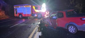Na manhã desta segunda-feira (25), por volta das 5h26, uma colisão frontal entre dois carros mobilizou equipes de emergência na BR-282, na comunidade de Linha Humaitá, em Cunha Porã, no sentido a Pinhalzinho.