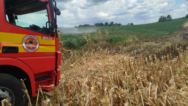 O trabalho da equipe de bombeiros contou com combate do fogo realizado em duas frentes. Uma linha de ataque foi direcionada à contenção do incêndio que estava se alastrando para uma lavoura de soja ao lado, enquanto a outra frente de combate foi realizada com soprador, na área onde estavam queimando as palhas de milho.