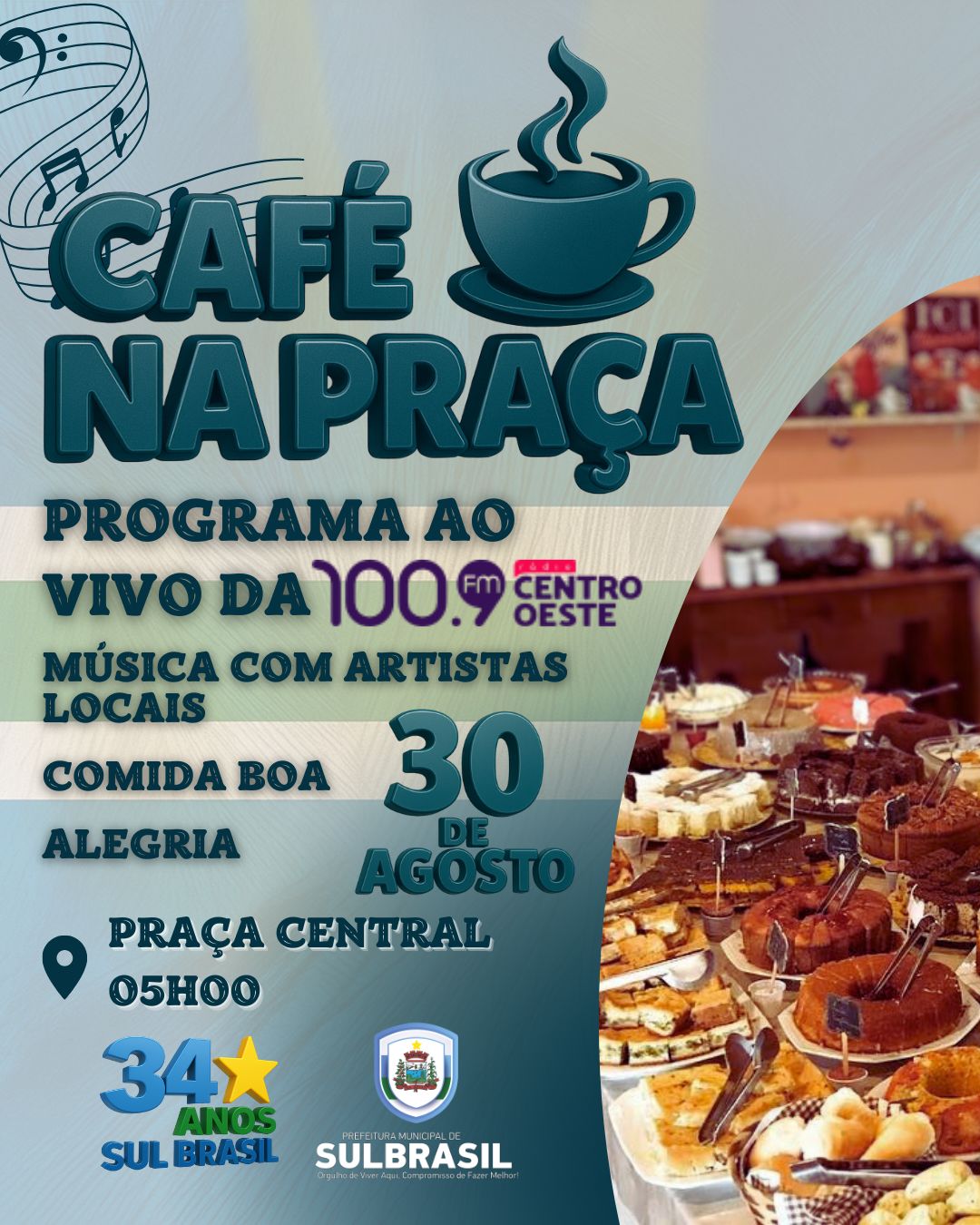 No próximo dia 30 de agosto, a comunidade de Sul Brasil terá um encontro especial para dar início às festividades de aniversário do município: o Café na Praça, a partir das 5h da manhã. O evento já é tradição e reúne moradores de todas as idades em um momento de convivência, amizade e celebração, valorizando o espírito comunitário que marca a história da cidade.