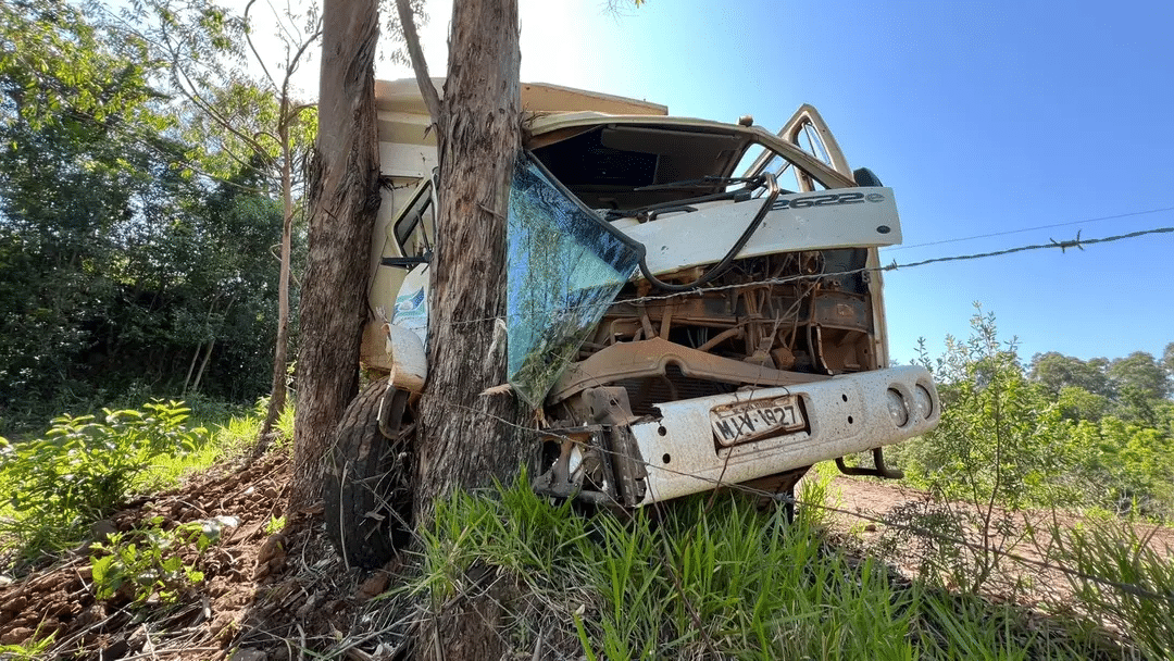 De acordo com informações da administração municipal, o incidente resultou apenas em danos materiais. Uma das rodas do veículo ficou presa entre dois troncos de árvore, mas não houve feridos. O caminhão também não atingiu outros automóveis.