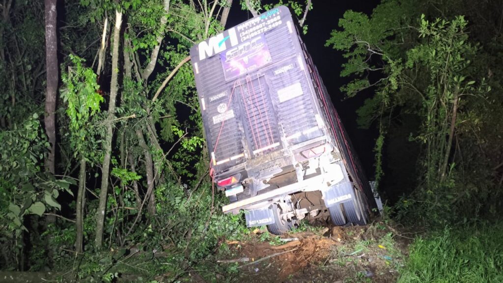 Na noite desta quarta-feira (24), por volta das 23h50, o Corpo de Bombeiros Militar de Palmitos foi acionado para atender a um acidente de trânsito do tipo saída de pista envolvendo um veículo de grande porte na BR-158, nas proximidades da linha Marcon, interior do município.
