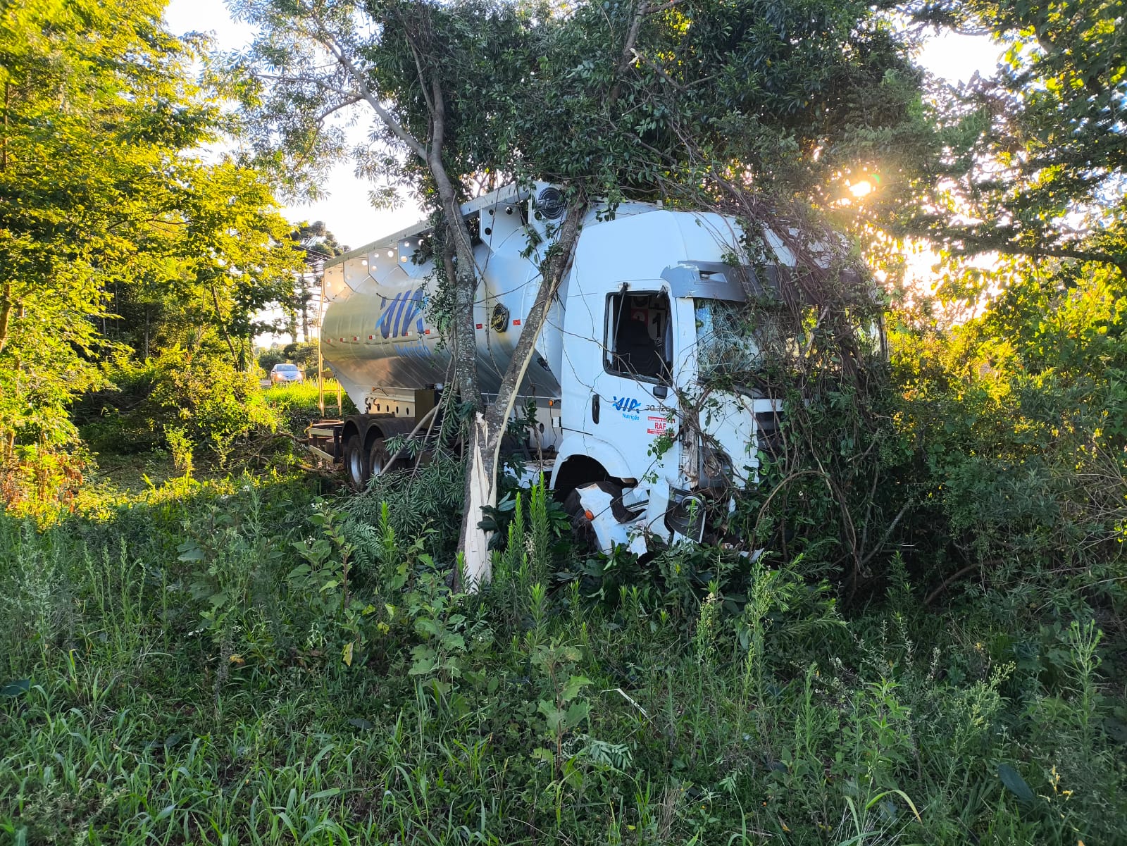 Ao chegar ao local, a guarnição confirmou a natureza da ocorrência. O condutor do veículo, um jovem de 21 anos, motorista de um caminhão Volkswagen/30.320, placas SFN4I40, já se encontrava fora do veículo, consciente e orientado. Conforme avaliação dos socorristas, ele apresentava sinais vitais normais, não relatava queixas e não possuía lesões aparentes.