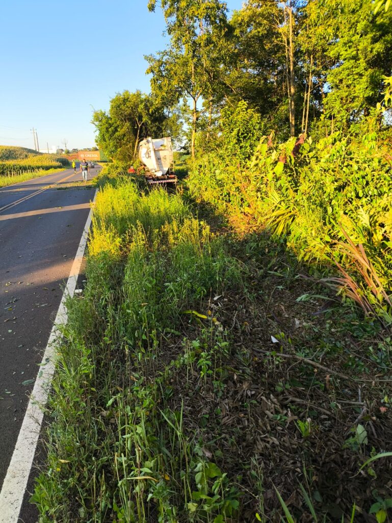 Por volta das 6h32 da manhã desta terça-feira (27), o Corpo de Bombeiros Militar de Anchieta foi acionado para atender uma ocorrência de saída de pista envolvendo um caminhão na SC-305, na Linha Café Filho, interior do município de Anchieta.