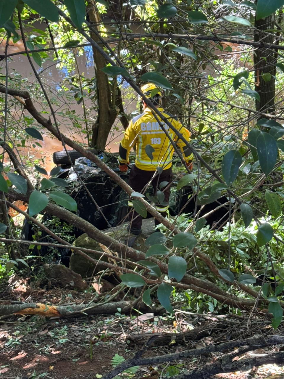 O chamado foi registrado por volta das 16h10. No local, os socorristas confirmaram a ocorrência de saída de pista seguida de tombamento. O veículo ficou lateralizado e preso entre árvores após a queda.
