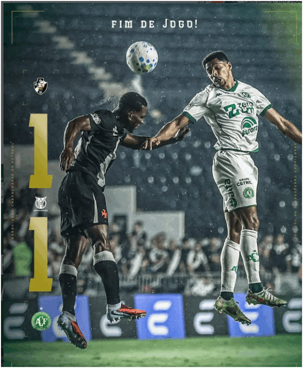 A Chapecoense mostrou poder de reação e personalidade ao empatar em 1 a 1 com o Vasco na noite desta quinta-feira (05), em São Januário, pela segunda rodada do Campeonato Brasileiro. Mesmo atuando fora de casa e sendo pressionada durante quase todo o confronto, o Verdão do Oeste resistiu defensivamente e garantiu o empate com um golaço de falta de Jean Carlos nos minutos finais.