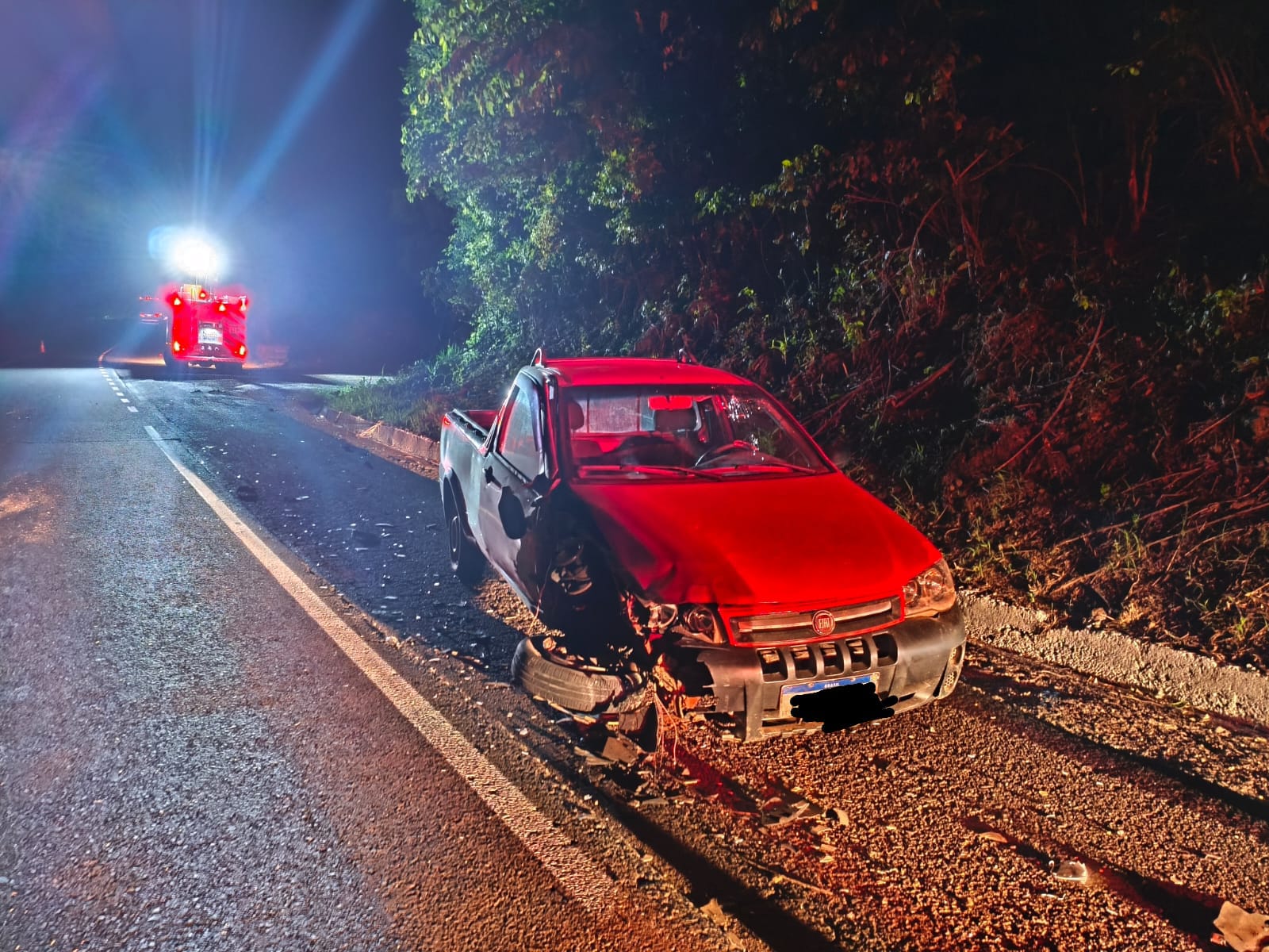 Ao chegar no local, a guarnição encontrou o motorista do Fiat Strada, um homem de 66 anos, consciente e orientado, apresentando escoriações leves no lábio inferior. O homem relatou que estava trafegando pela rodovia quando seu veículo foi atingido por um caminhão, que não permaneceu no local após o acidente.