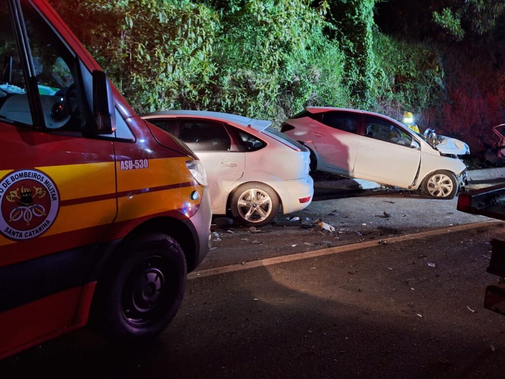 Um grave acidente entre três veículos na madrugada desta segunda-feira (3), por volta das 00h39, matou um adolescente e uma jovem em Xanxerê, no Oeste de Santa Catarina. As vítimas, de 16 e 20 anos, estavam em uma motocicleta que se envolveu em uma colisão com um VW Gol e um Ford Focus.