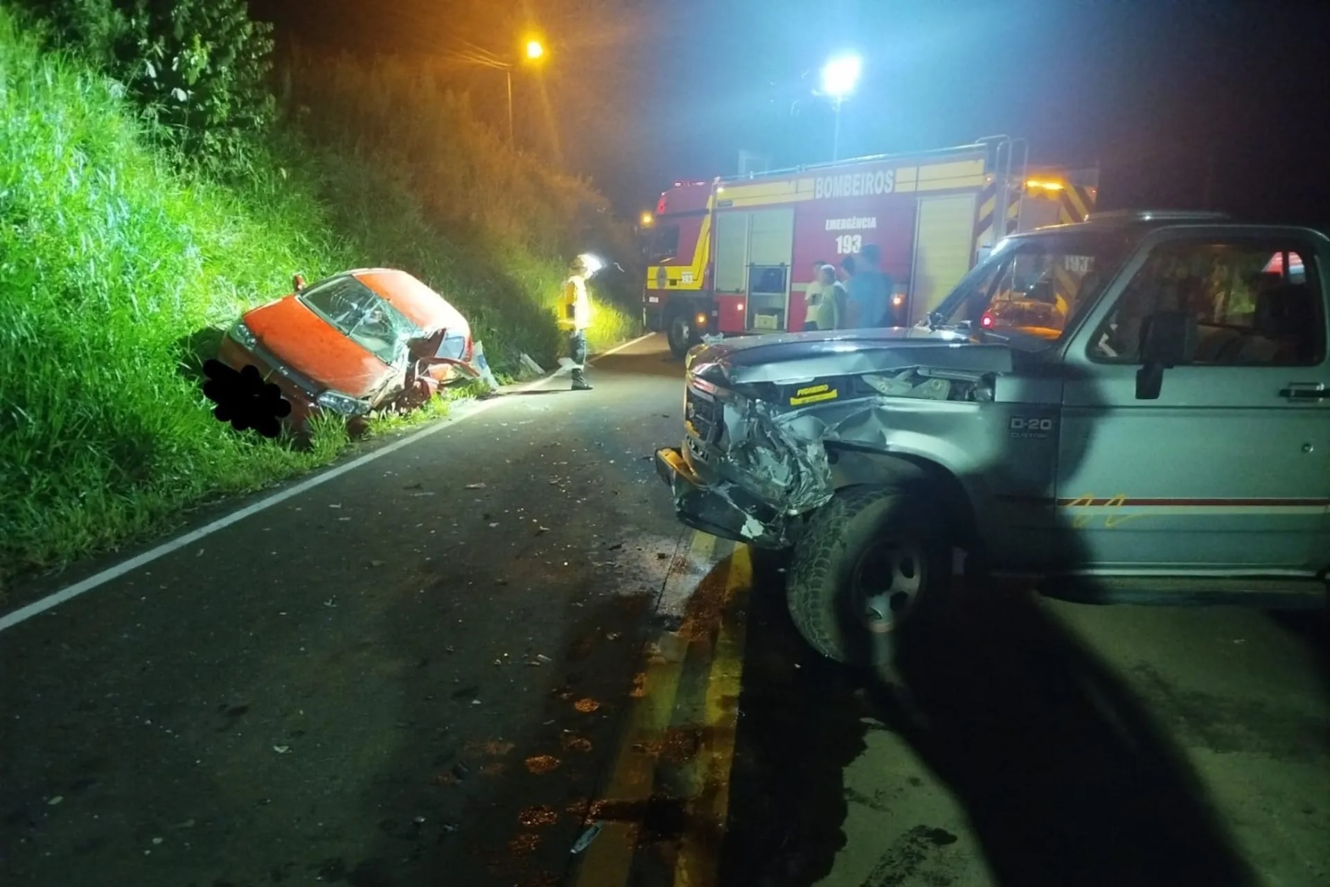 Um grave acidente de trânsito foi registrado na noite deste domingo, 11, por volta das 20h00, na estrada da Ilha Redonda/Linha Alegre, no interior de Palmitos. A ocorrência envolveu uma colisão frontal entre um Fiat Palio e uma Chevrolet D20.