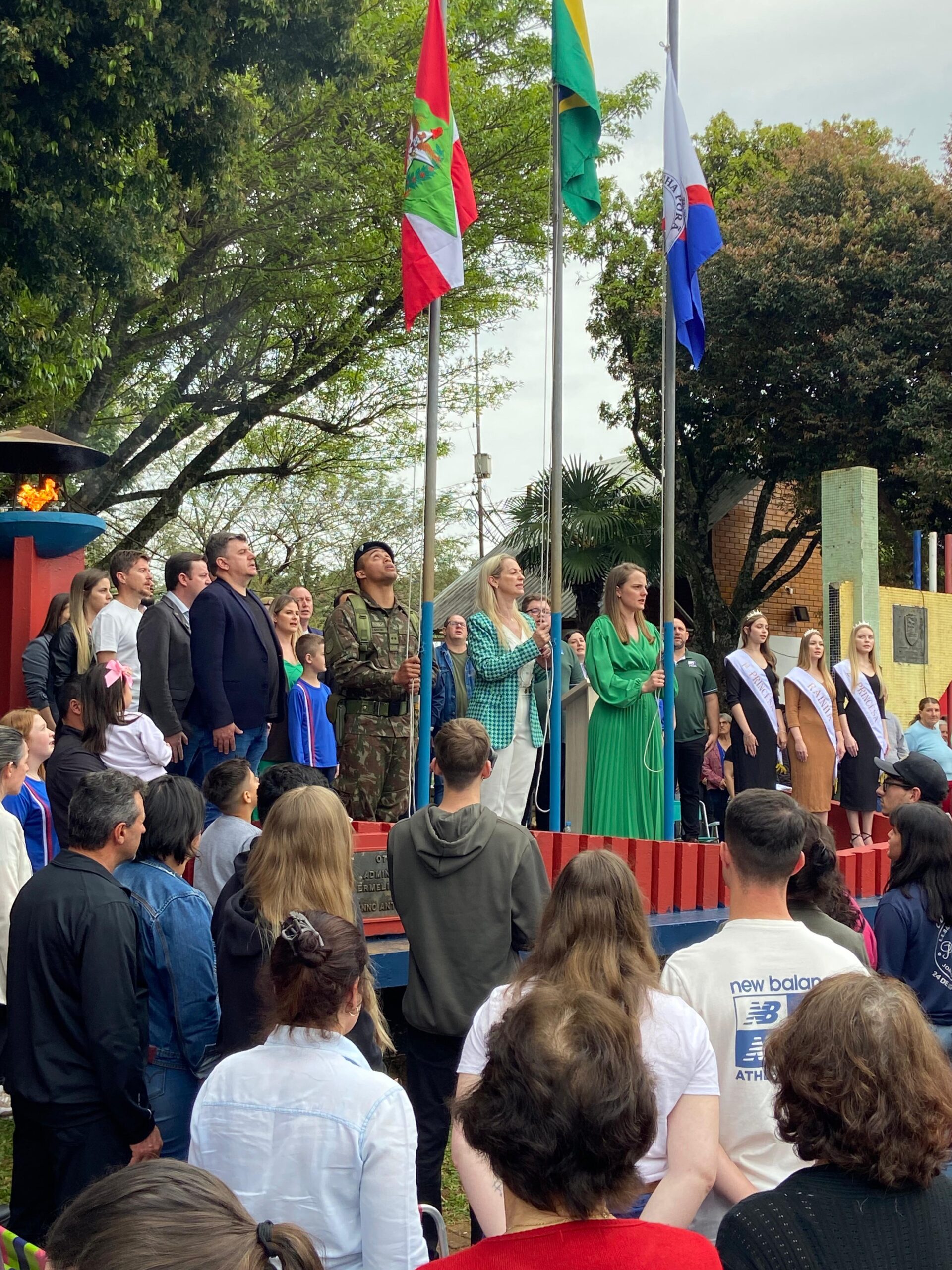 Pais, familiares e a população em geral prestigiaram a programação, que reforçou o espírito patriótico e marcou a passagem do 7 de Setembro em Cunha Porã.