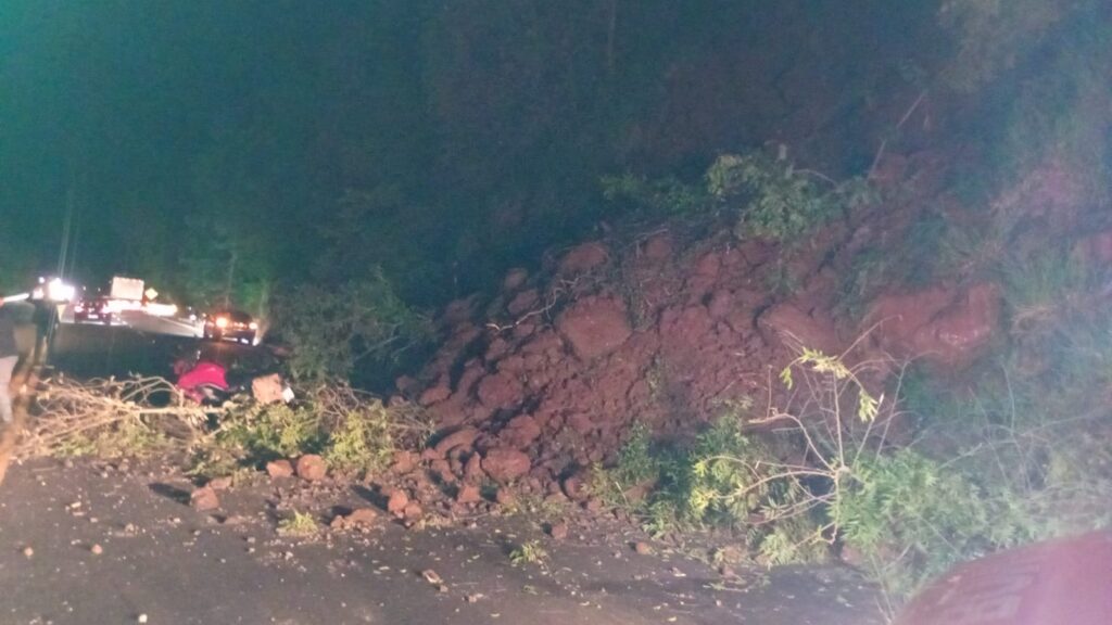 Um deslizamento de terra e pedras interditou parcialmente a BR-282 no início da noite desta quarta-feira (08), na altura da Linha Amizade, interior de Nova Itaberaba, próximo à ponte sobre o rio Chapecó. A ocorrência foi atendida pelo Corpo de Bombeiros Militar de Pinhalzinho por volta das 18h57.