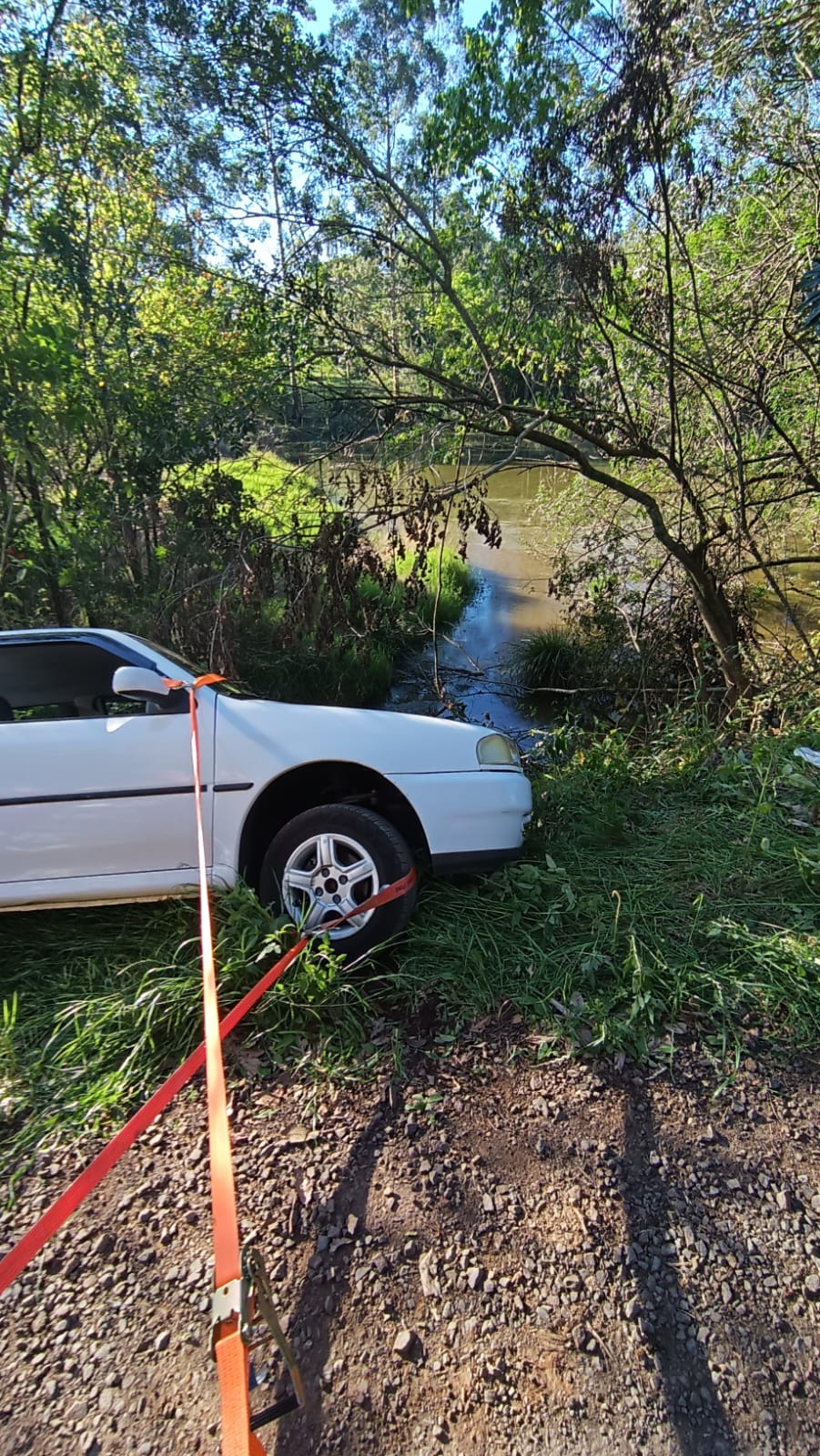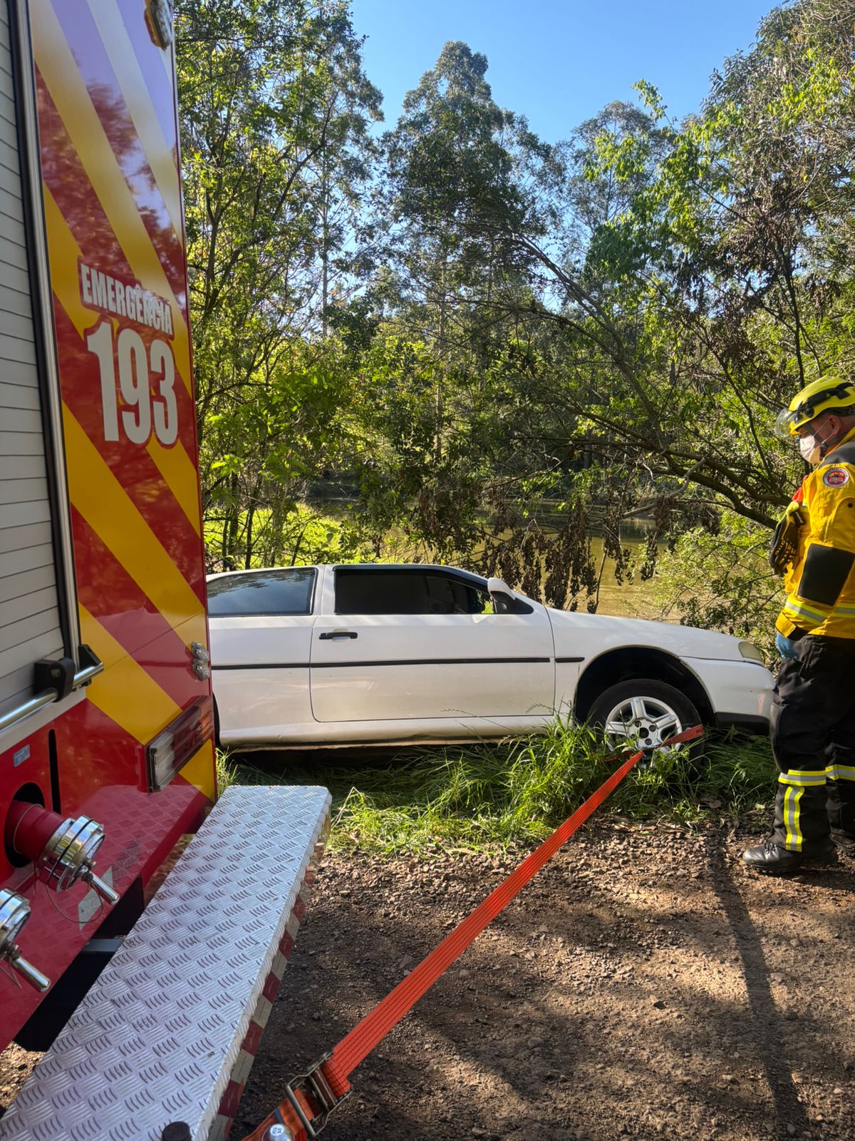 O chamado foi recebido por volta das 16h. No local, os bombeiros encontraram um veículo VW Gol, com placas de Cunha Porã, fora da pista e posicionado sobre as quatro rodas, em um declive lateral à margem da estrada.