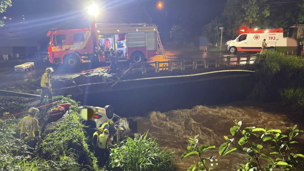Duas pessoas são resgatadas de automóvel que caiu dentro de rio em Maravilha