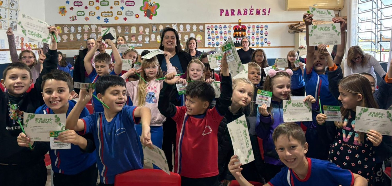 Mais de 200 alunos da Escola Núcleo Número Um, em Cunha Porã, tornaram-se “guardiões da natureza”, através do Programa de Educação Ambiental. Acompanhados por professoras das turmas e pela diretora da escola os estudantes do ensino fundamental receberam o projeto de iniciativa da Ambiental Limpeza Urbana e Saneamento.