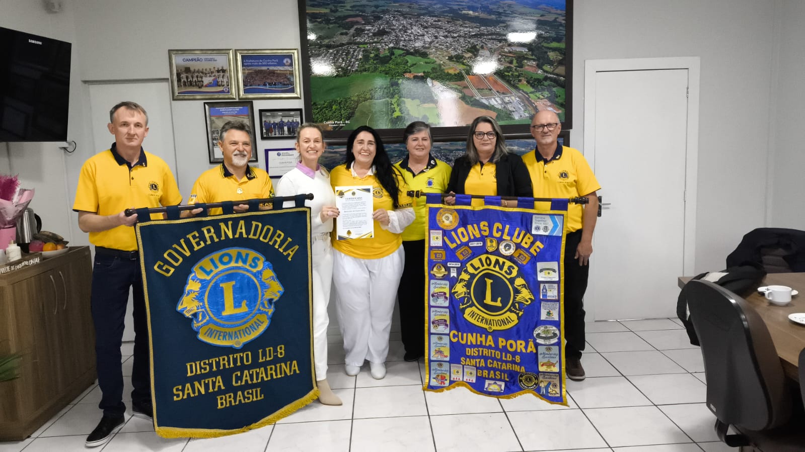A prefeita Luzia Vacarin também expressou gratidão pela visita e pelo apoio do Lions ao município. “É uma honra receber a governadora e agradecer ao clube por todo o trabalho voluntário. O Lions auxilia nossa comunidade com cadeiras de rodas, camas hospitalares e muletas, além de diversas ações sociais. Estamos destinando um espaço fixo para o Lions e o Leo Clube na futura Casa da Cultura, fortalecendo essa parceria que tanto contribui com Cunha Porã”, afirmou.