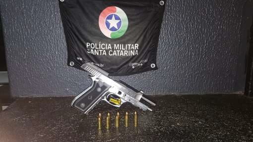 Na noite desta terça-feira (17), por volta das 22h30, a Polícia Militar de Santa Catarina atendeu a uma ocorrência de porte ilegal de arma de fogo de uso restrito no município de São Lourenço do Oeste.