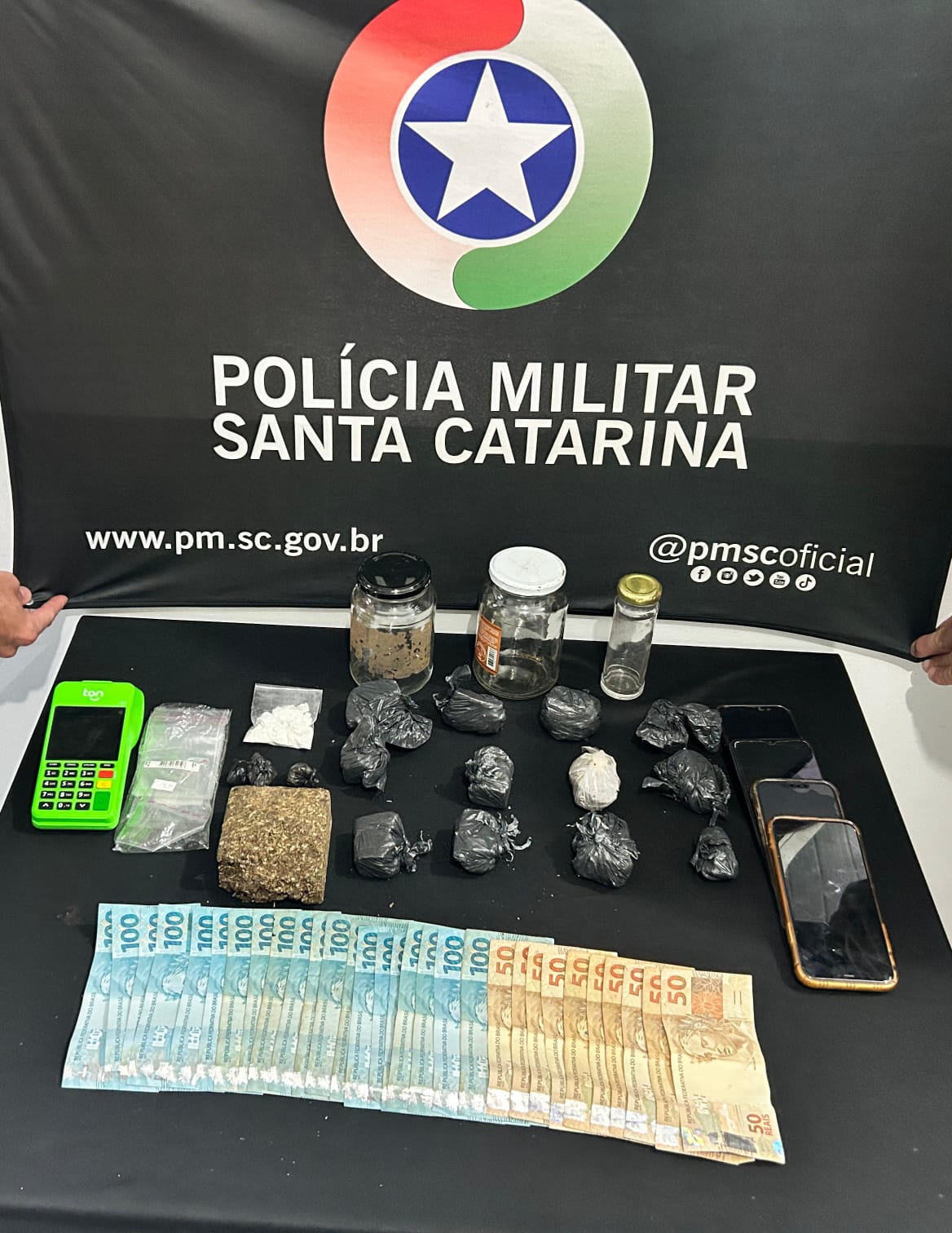 Ao todo, foram apreendidos 31 gramas de cocaína e 509 gramas de maconha. Os dois homens receberam voz de prisão e foram encaminhados, juntamente com a droga e os demais materiais apreendidos, à Delegacia de Polícia Civil de São Miguel do Oeste para os procedimentos cabíveis.