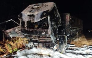 Segundo o CBMSC, o veículo estava carregado com soja e o motorista não ficou ferido. Após o atendimento, foram feitos os registros da ocorrência e repassadas orientações ao proprietário.