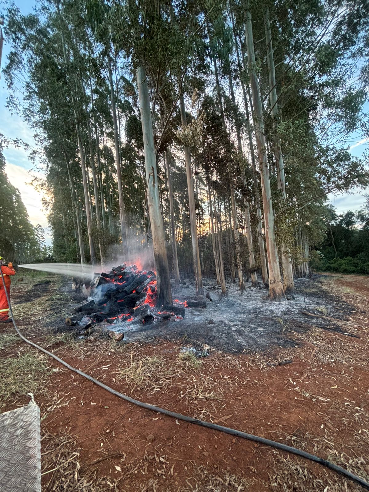 Chegando ao local, os bombeiros constataram que as chamas estavam consumindo uma plantação de eucalipto e uma plantação de milho. Imediatamente, a equipe iniciou o combate ao incêndio, utilizando água transportada e batedores. Após aproximadamente 1 hora e 20 minutos de trabalho intenso, o fogo foi controlado, e o rescaldo teve início.