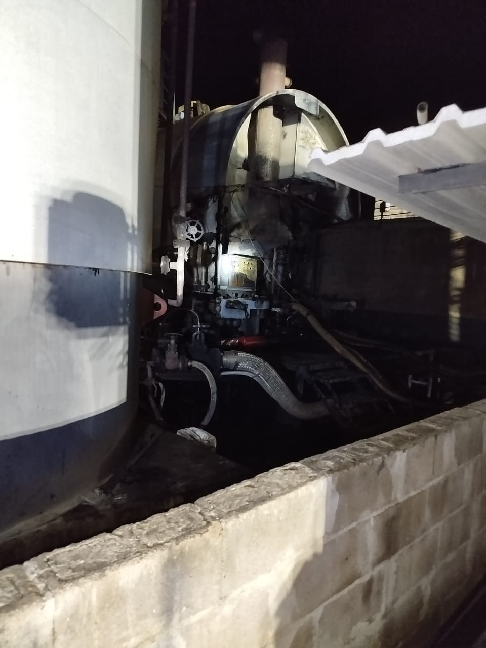 Ao chegar no local, a equipe constatou que o fogo atingia a parte externa do tanque, resultando em um vazamento do material inflamável e gerando um alto risco de explosão. A situação exigiu ações rápidas e coordenadas para evitar maiores danos.