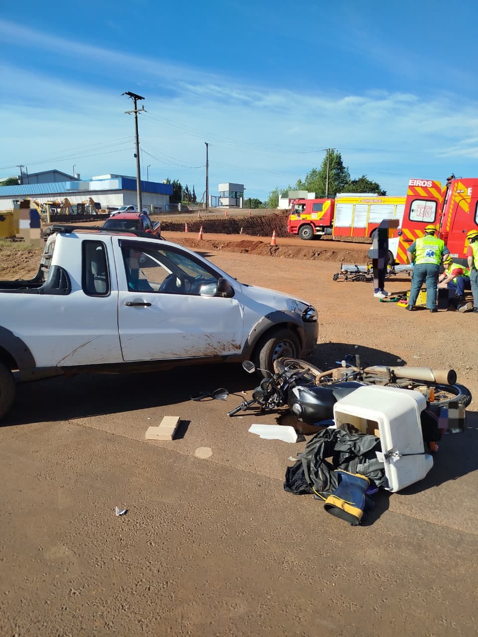 A colisão envolveu uma motocicleta Honda CG e uma Fiat Strada. Quando as equipes chegaram ao local, o condutor da motocicleta, um jovem de 19 anos, estava sentado às margens da rodovia. Ele se encontrava consciente e orientado, apresentando escoriações no rosto e relatando dores no joelho direito.
