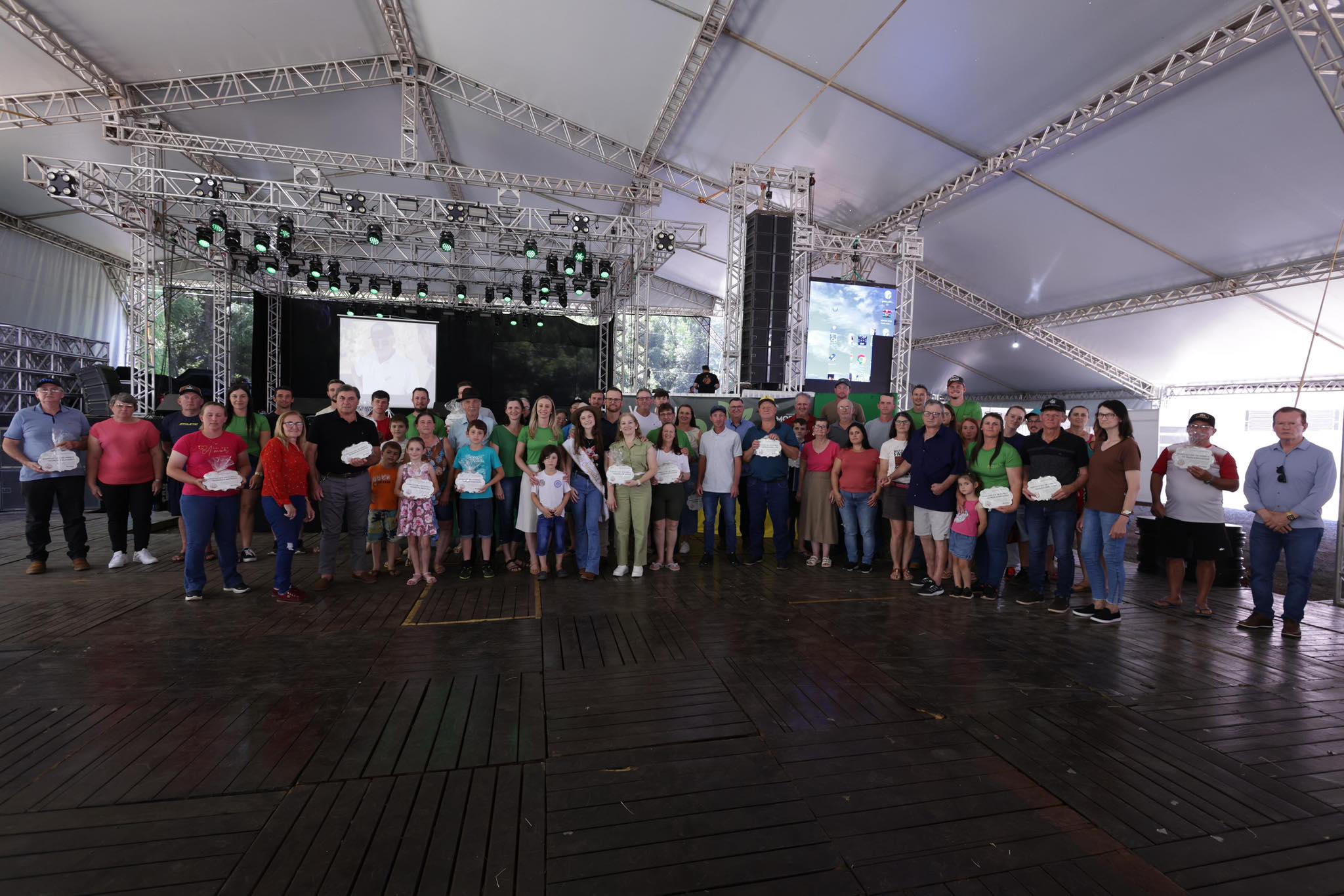 Entre as atividades realizadas pela manhã, ocorreu um momento muito especial: a homenagem aos suinocultores, na qual cada um recebeu uma placa representando sua história, resiliência e capacidade de inovar. O gesto simboliza o agradecimento do Governo Municipal, reconhecendo que o crescimento de Modelo passa diariamente pelas mãos daqueles que trabalham no campo e fazem da suinocultura um exemplo de força, qualidade e prosperidade.