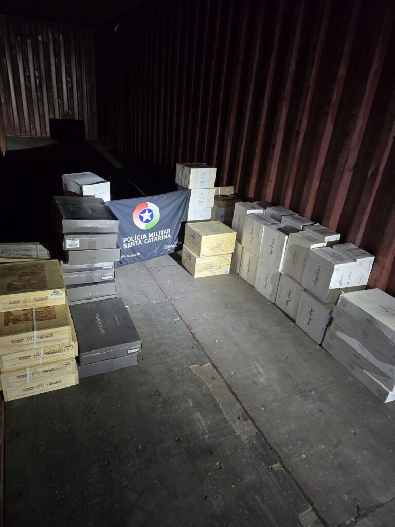 Durante a ação, os policiais abordaram um caminhão Mercedes-Benz, com placas de São João do Oeste (SC), conduzido por um homem de 44 anos. Em vistoria no compartimento de carga do veículo, foram encontradas 71 caixas de vinho, totalizando 416 garrafas de diversas marcas.