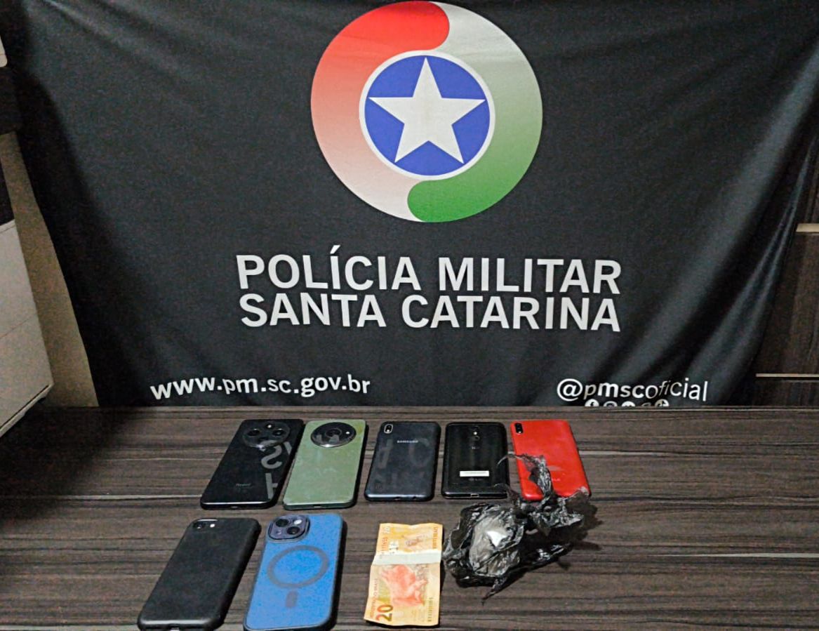 Diante da situação, foi dada voz de prisão aos três envolvidos. Além da droga, a polícia apreendeu sete aparelhos celulares que estavam em posse dos suspeitos.