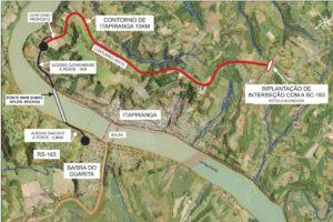 No lado catarinense, a ligação será com a BR-163, na comunidade de Santa Fé Alta, em Itapiranga, em um trecho de aproximadamente 7 quilômetros.