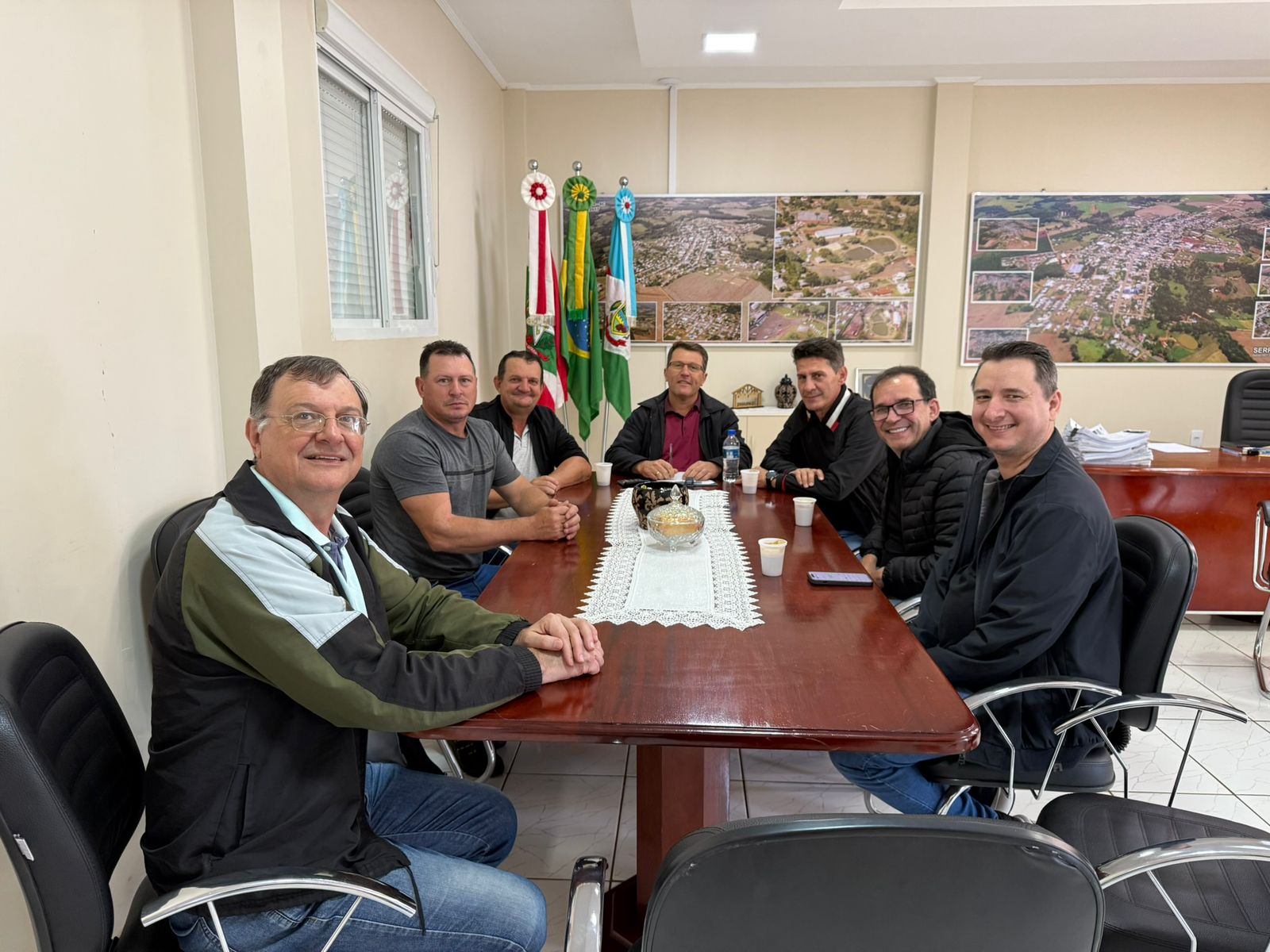 O prefeito de Serra Alta, Rafael Marin, acompanhado do secretário de Administração Vanderli Rui de Gaspari e dos vereadores do União Brasil Marinho Provenci e Antonio Cerezolli, recebeu em seu gabinete os assessores parlamentares Joel dos Passos e Emerson Tizoni, do deputado federal e presidente do União Brasil em Santa Catarina, Fábio Schiochet. Também participou do encontro o coordenador regional do partido, Altair Domingos Zenatti.