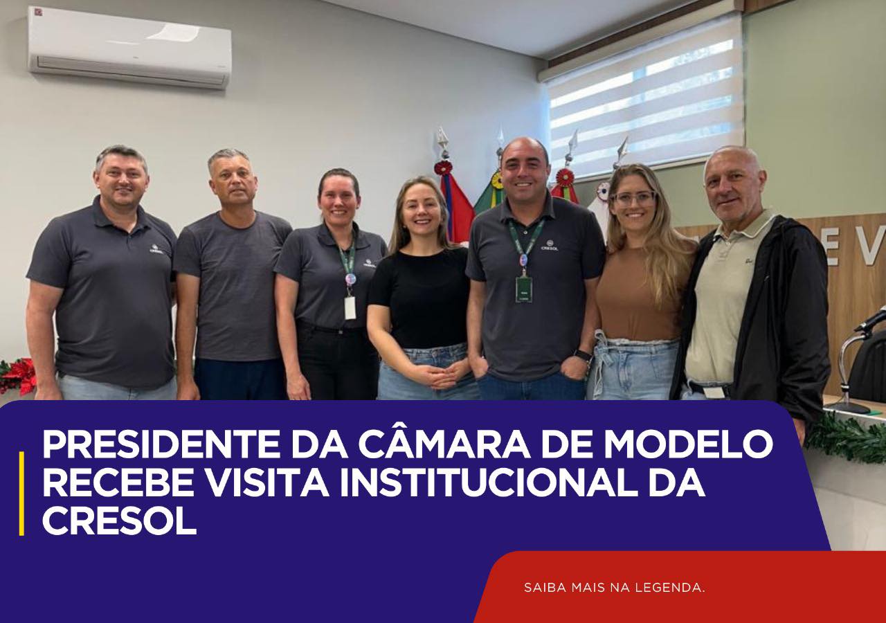 A Câmara Municipal de Vereadores de Modelo recebeu, nesta semana, a visita institucional do gerente da Cresol de Modelo, Pedro Julio Possamais Menezes, acompanhado de colaboradores da agência local. A comitiva foi recepcionada pela presidente do Legislativo, vereadora Daiane Frey, e por servidores da Casa, em um encontro voltado ao fortalecimento das relações entre as instituições e à apresentação dos serviços oferecidos pela cooperativa financeira.