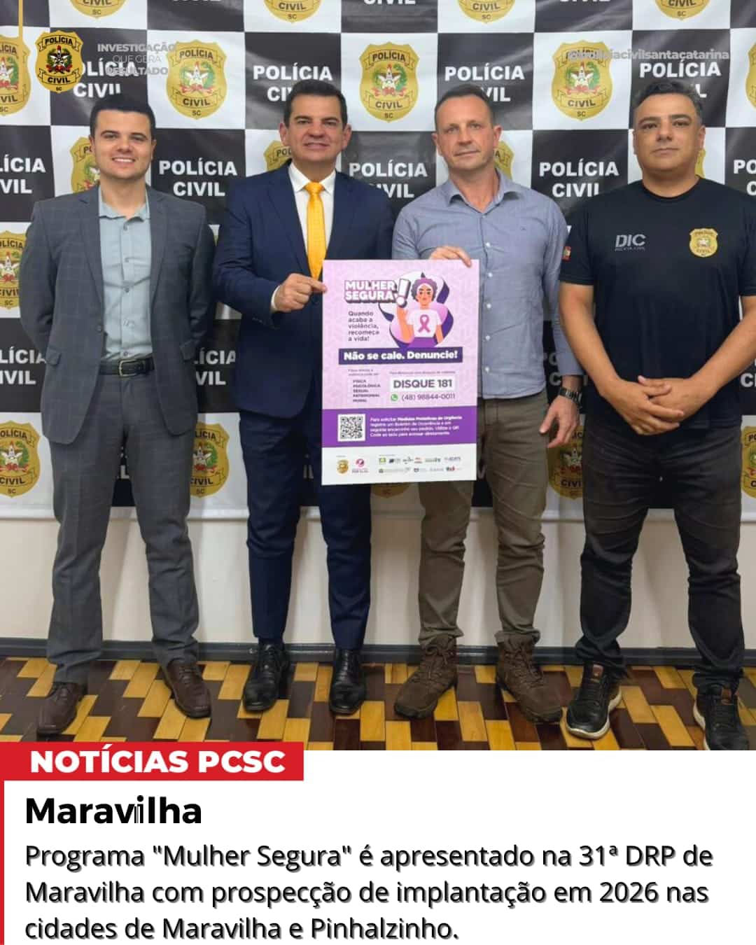 O Diretor de Polícia da Fronteira da Polícia Civil de Santa Catarina, Delegado Fernando Callfass, apresentou na tarde desta quarta-feira (12) o programa “Mulher Segura” para a 31ª Delegacia Regional de Polícia da Fronteira de Maravilha.
