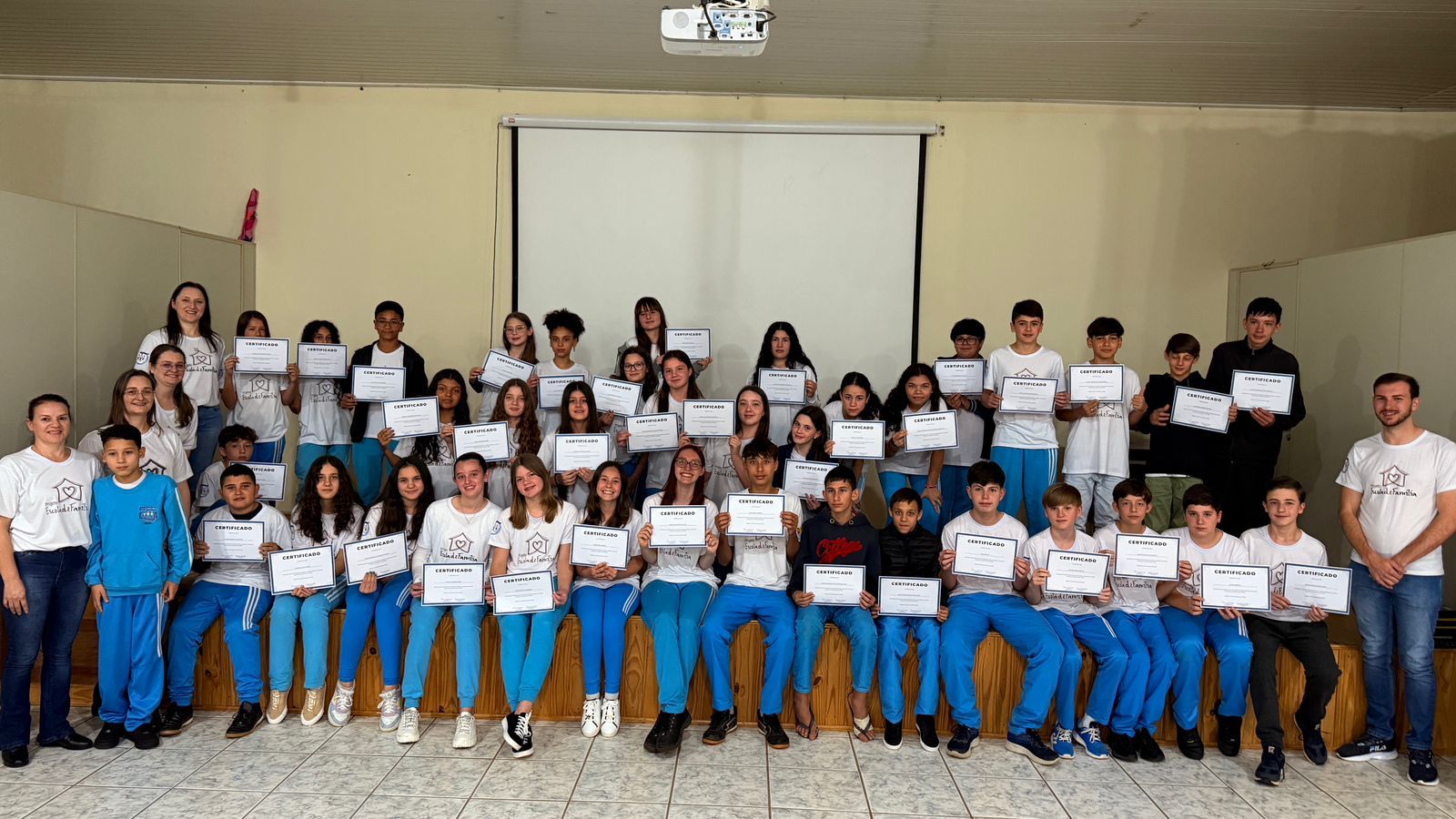 Os primeiros lugares foram garantidos pelos alunos Valentina Marins e Arthur Vinicius Mai Centa. Já os segundos lugares foram dos alunos Maria Eduarda de Souza e Raíssa Valentina Linke Riboli. “Parabenizamos todos os alunos e alunas pelas brilhantes redações, bem como os pais e professores que participaram do Projeto neste ano”, finalizou a diretora de Assistência Social, Patricia Machado.