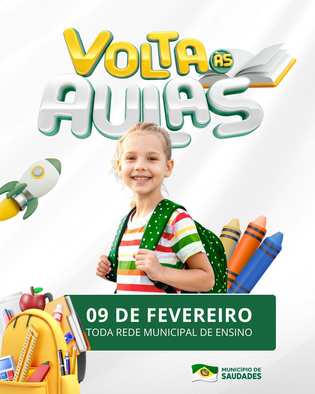 Na segunda-feira, 09 de fevereiro, está previsto a volta às aulas em toda a Rede Municipal de Ensino no município.