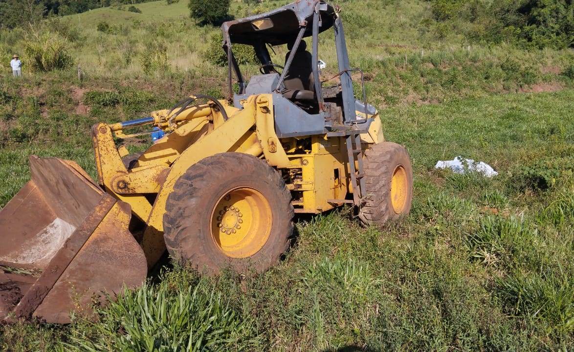 Segundo o Corpo de Bombeiros, a máquina trabalhava em um terreno elevado quando o operador perdeu o controle e desceu uma ribanceira de aproximadamente 300 metros.