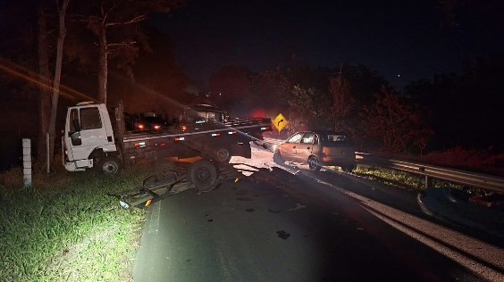 A colisão em cadeia gerou danos materiais de média monta no GM Corsa e no reboque. Apesar do susto e da complexidade do acidente, os quatro motoristas envolvidos, homens com idades entre 32 e 45 anos saíram ilesos. A pista ficou interditada por aproximadamente três horas até a liberação total do trânsito.